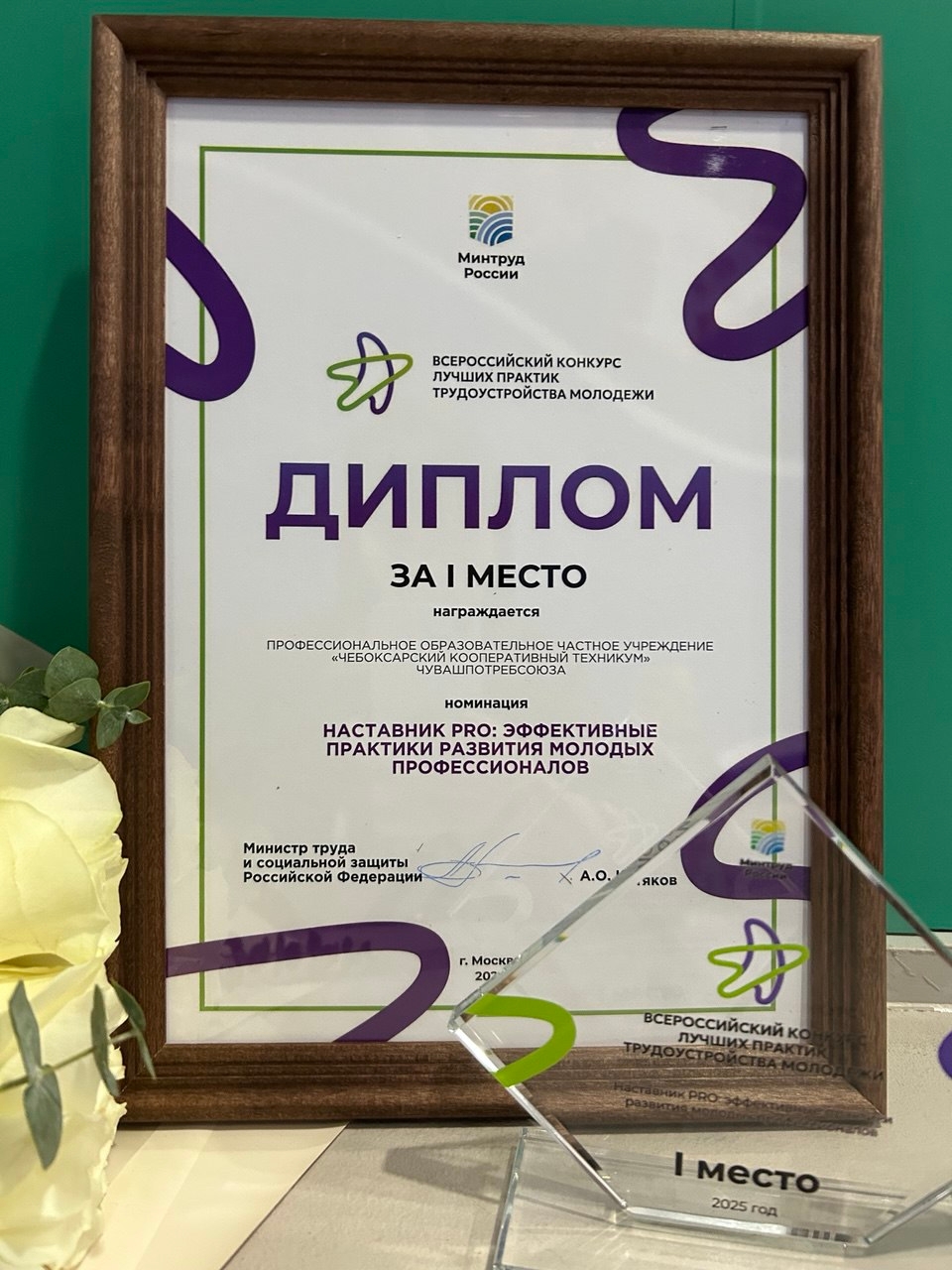 Коллектив Чебоксарского кооперативного техникума Чувашпотребсоюза занял ПЕРВОЕ МЕСТО в финальном этапе Всероссийского конкурса лучших практик трудоустройства молодежи в номинации «Наставник PRO: практики развития молодых профессионалов».