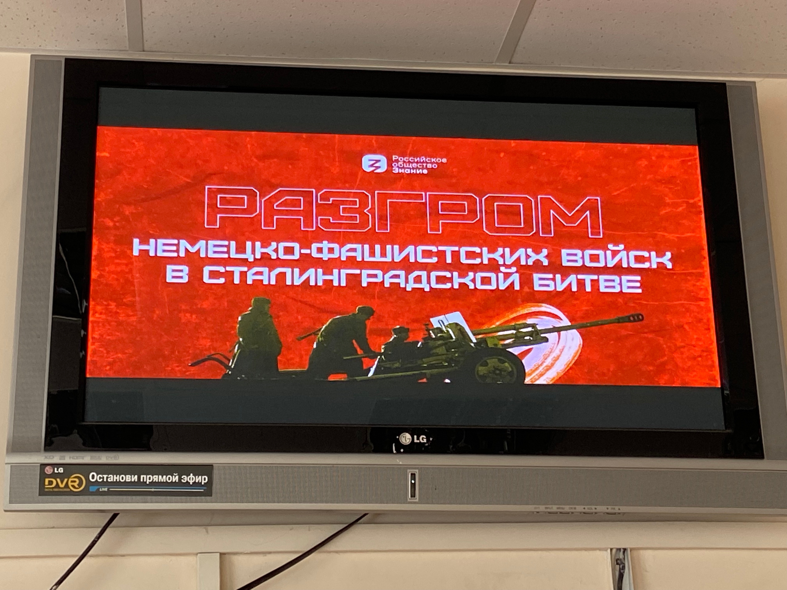 В честь этой даты по всей стране проходят памятные мероприятия. Так, лектор Российского общества «Знание», педагог-организатор Потапова Арина Николаевна провела интерактивную лекцию, посвященную героизму защитников Сталинграда.