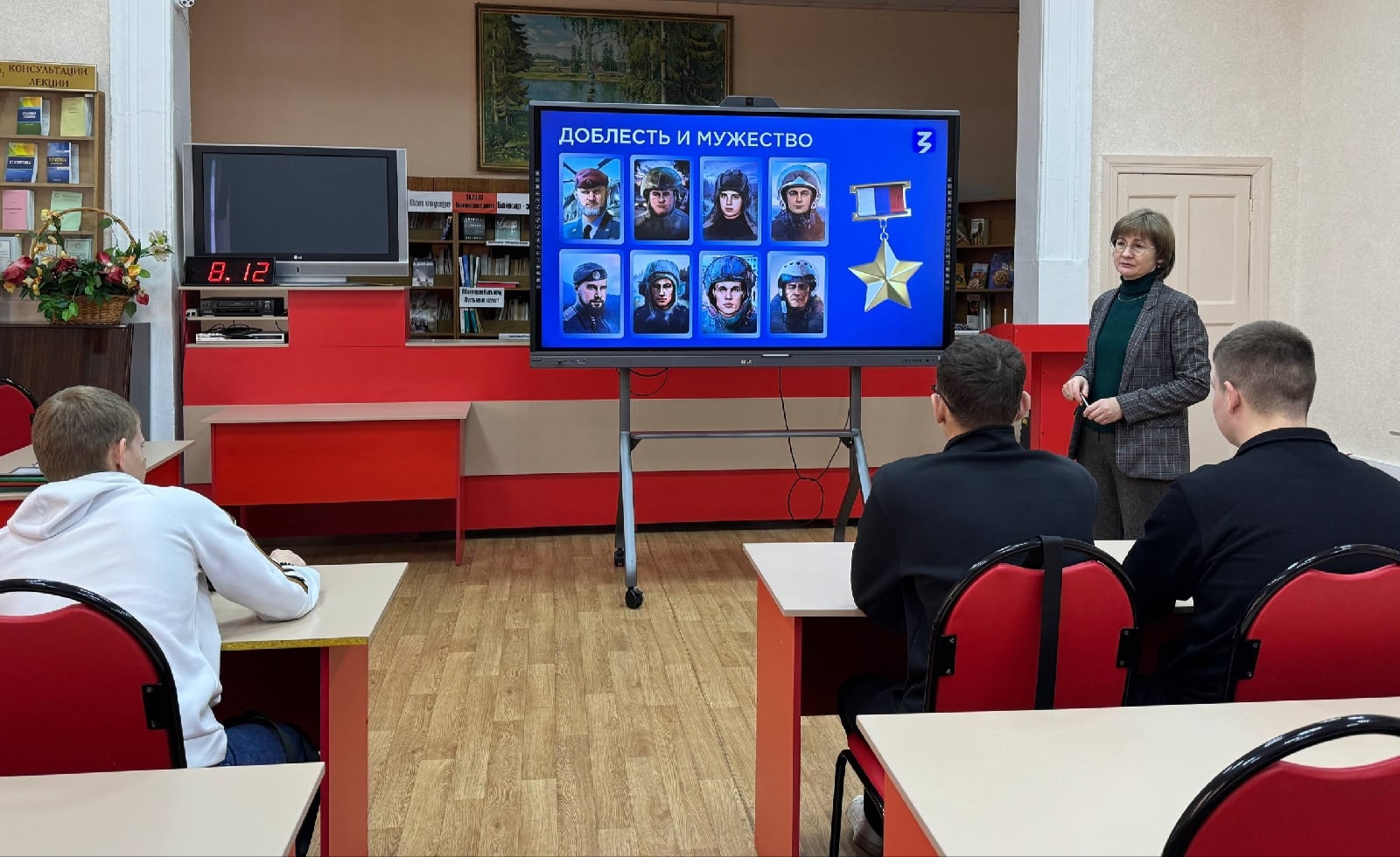 На мероприятии лектор Плотникова Е.В. и ее помощники, члены СНО ЧКТ, говорили с ребятами о подвигах, которые вписали имена наших соотечественников в историю, о настоящем мужестве и любви к Родине, о том, что такое героизм сегодня, о ценностях долга, чести и отваги.
