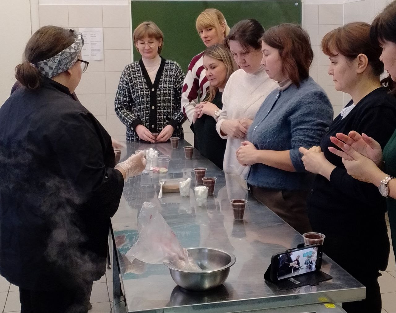 29 января в рамках недели цикловой комиссии сервисных дисциплин в учебном кулинарном цехе ресторана для преподавателей техникума был проведен мастер - класс "Горячий напиток с шоколадными бомбочками".