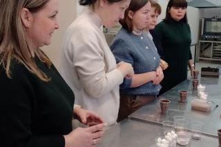 Преподаватели других циклов погрузились в атмосферу творчества, приняв участие в изготовлении и украшении изысканных шоколадных бомбочек. Эта недолгая встреча стала отличной возможностью расслабиться во время напряженного учебного дня, зарядиться вдохновением и новыми кулинарными идеями.