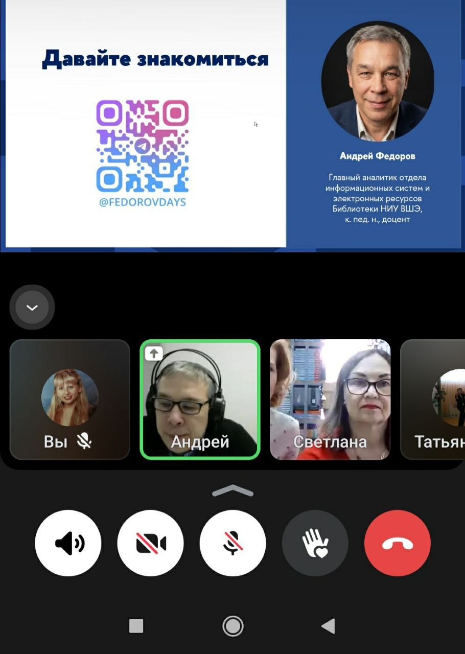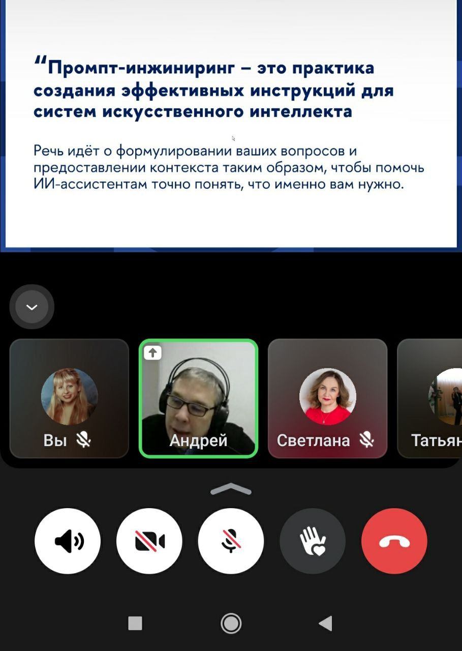 В первой части заседания перед слушателями выступил Федоров А.О., кандидат педагогических наук, доцент, главный аналитик отдела информационных систем и электронных ресурсов библиотеки НИУ "Высшая школа экономики". Андрей Олегович представил презентацию об основах промпт-инжиниринга и порекомендовал оптимальные в использовании русскоязычные и зарубежные нейросети.