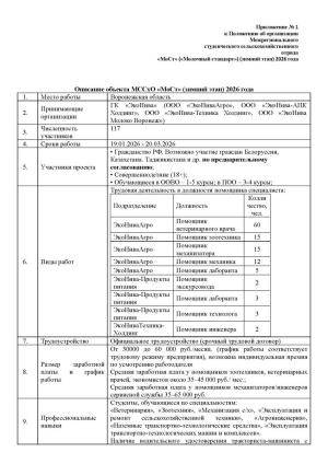ПАСПОРТ ОБЪЕКТА Межрегиональный сводный студенческий сервисный отряд «Мрия»