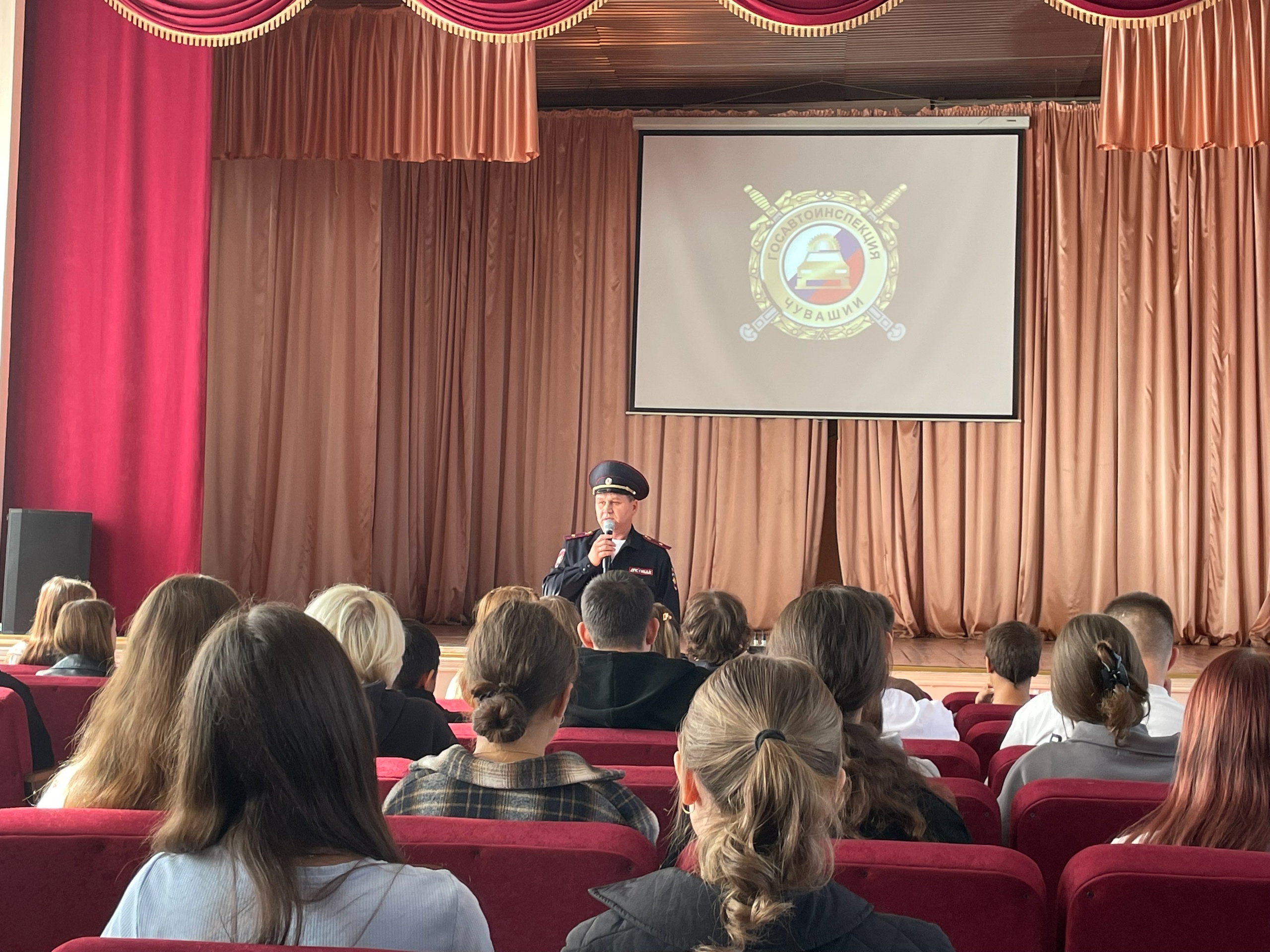 Сегодня, в техникуме в рамках Единого дня безопасности состоялась важная встреча студентов 1 курса со старшим инспектором по особо-важным поручениям отдела надзора Управления госавтоинспекции по Чувашской Республике, майором полиции Васильевым А.Г. Темой беседы стали права и обязанности участников дорожного движения: водителей, пешеходов и пассажиров.
