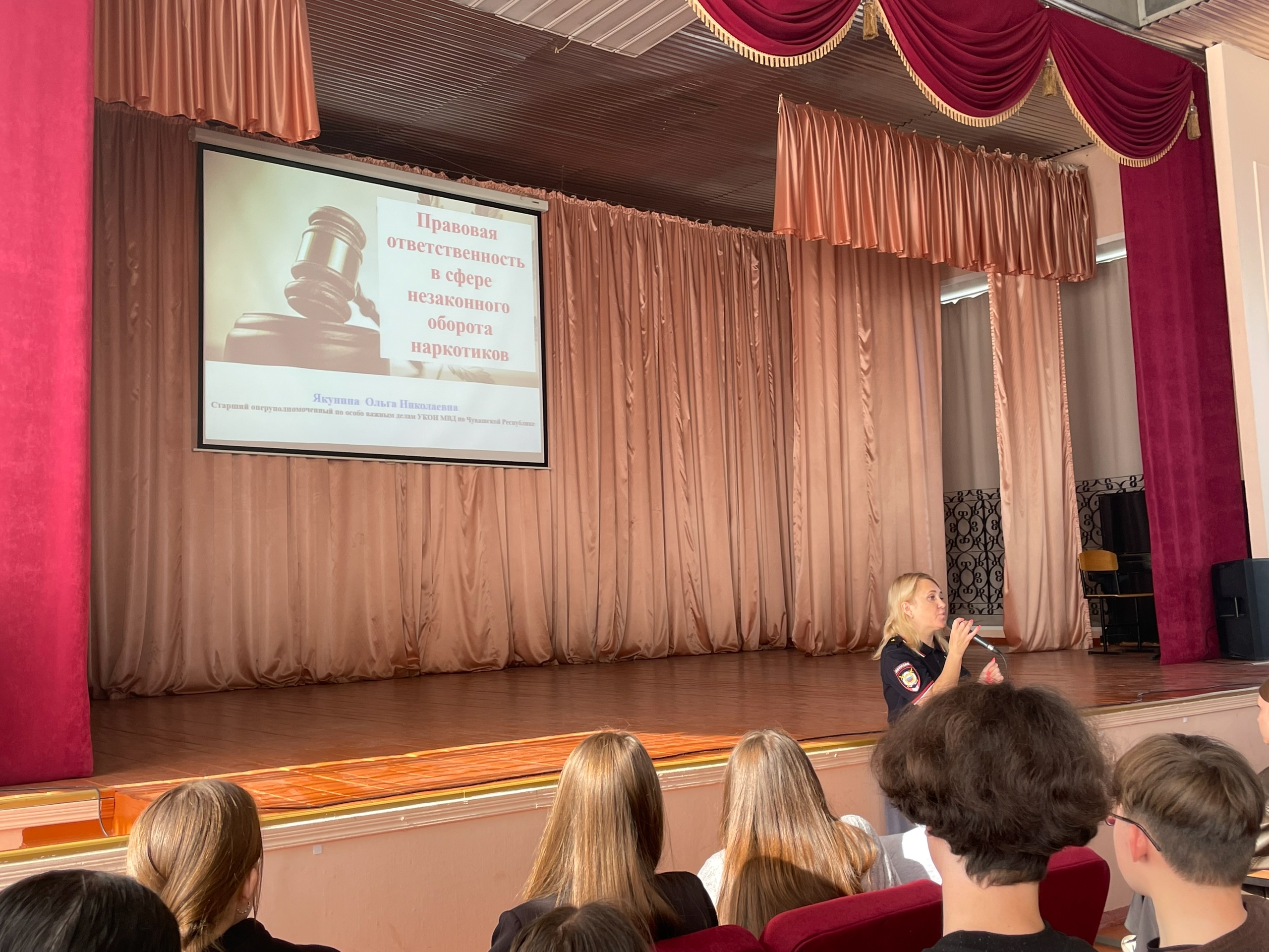 Сегодня в рамках профилактической работы состоялась важная беседа со студентами нового набора на тему «Правовая ответственность в сфере незаконного оборота наркотиков». Мероприятие провела старший оперуполномоченный по особо важным делам УКОН МВД по Чувашской Республике Ольга Николаева Якунина.