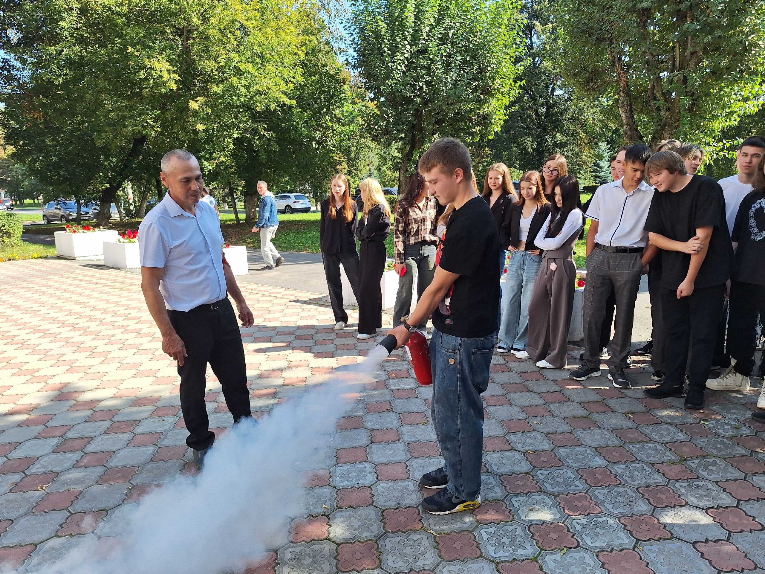 1 сентября преподаватель Никитин Р.И. провел в группе Ф-21 открытое занятие по безопасности жизнедеятельности, приуроченное к началу учебного года, посвященное правилам безопасного поведения в повседневной жизни и действиям в различного рода чрезвычайных ситуаций. На уроке студентам продемонстрировали видеоролики, в которых были рассмотрены алгоритмы действий в условиях химического заражения, пожара, террористической угрозы. Студенты надевали костюмы химзащиты. Была отработана ситуация при угрозе прилета БПЛА,осуществлена учебная эвакуация, в ходе которой студенты попробовали свои силы в использовании углекислотного огнетушителя. Рассматривались также правила электробезопасности и правила дорожного движения. Урок закончился викториной по дорожным знакам.