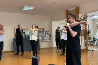 В ходе занятия студенты ознакомились с техникой выполнения базовых элементов и связок в аэробике.