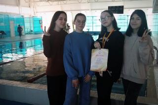 Также, плыли командный заплыв, в котором две участницы команды – Мемнова Елизавета и Шолина Анастасия плыли брассом, а Александра Тегерлеева и Карина Осипова – вольным стилем. Наши девочки заняли 4 место с отрывом от 3 места в 3 секунды!
