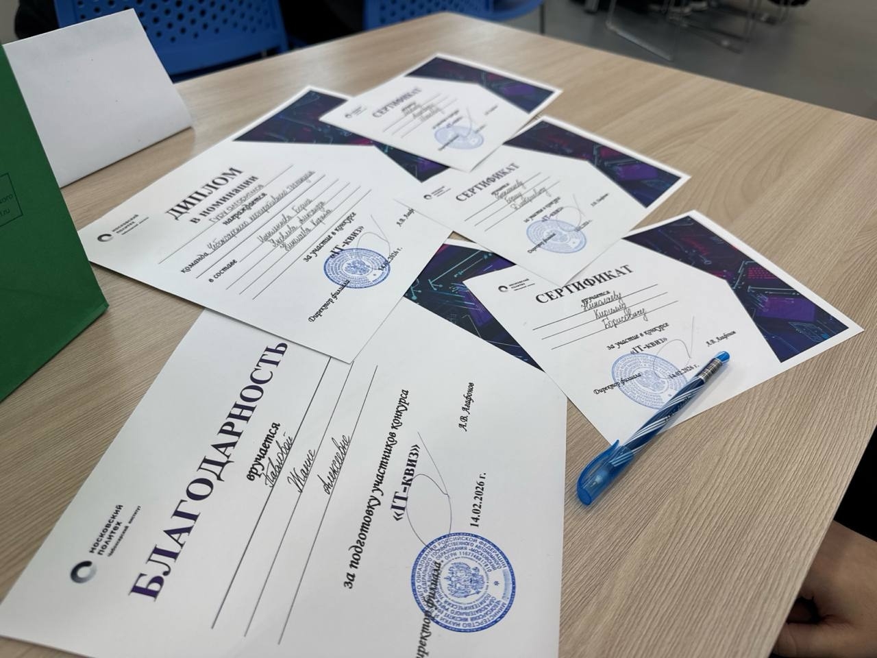 Студенты группы БД-21 Цыпленков Б., Яковлев А., Николаев К. приняли участие в этом квизе. В IT-квизе были: