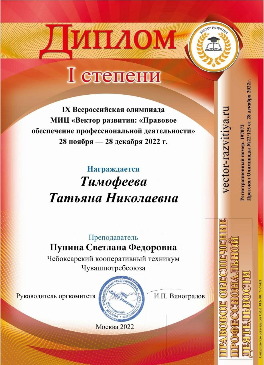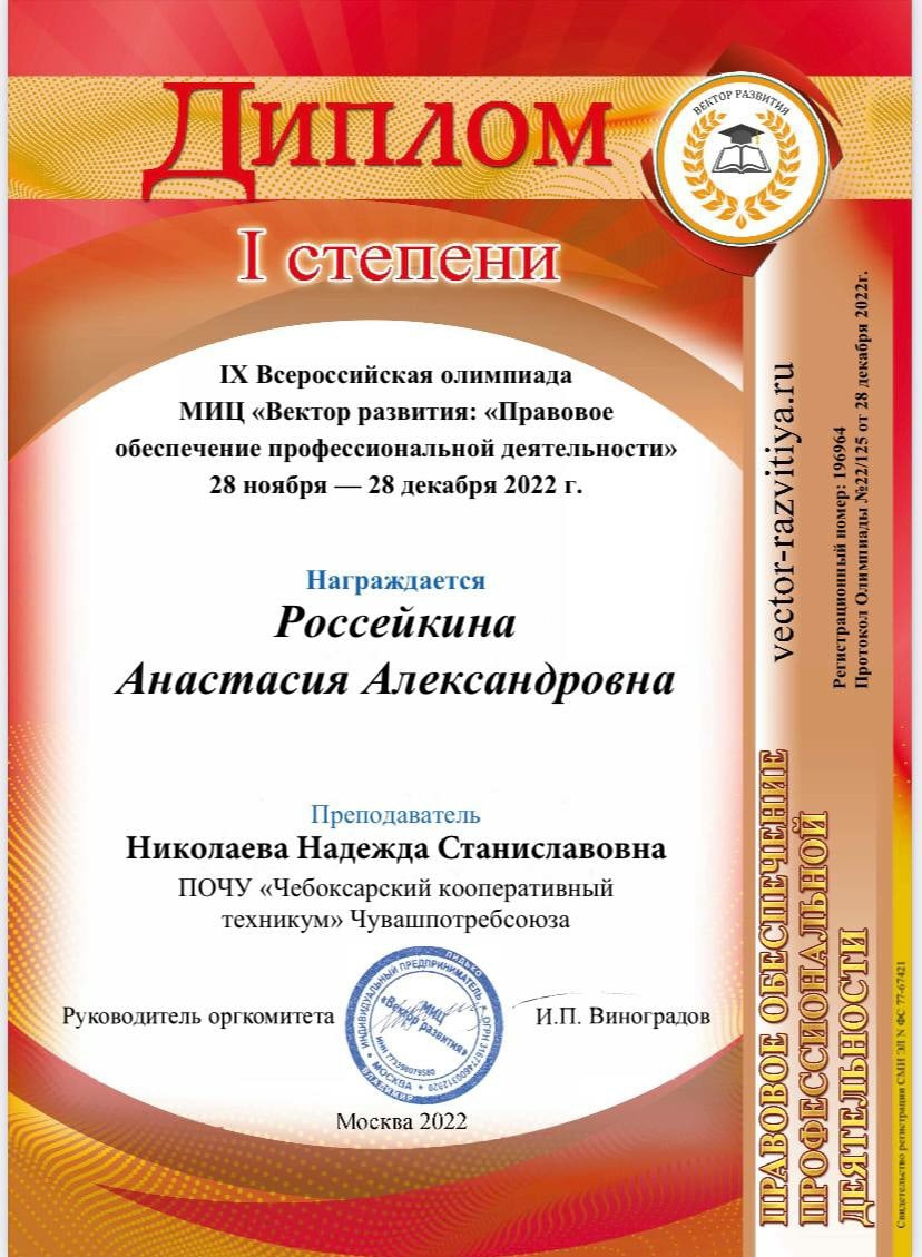 Всероссийская олимпиадя по «Правовому обеспечению профессиональной деятельности»