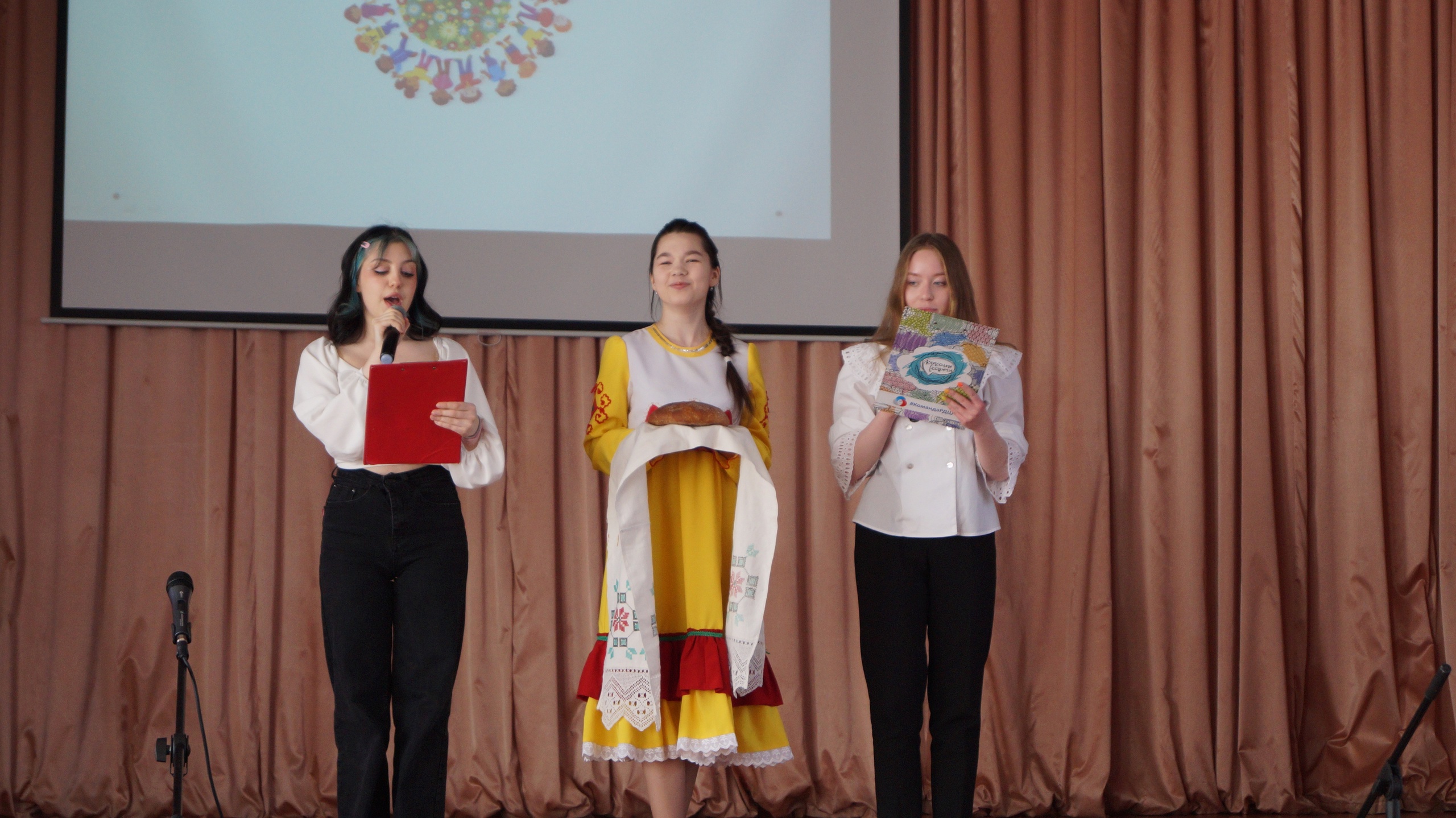 Затем на сцене прозвучала песня Марины Арлашкиной «Колокола». Никитина Виктория Сергеевна исполнила чувашский танец. Зал с удовольствием слушал песни Захарова Кирилла «Эмоции», Бородиной Натальи «Боль», «Любовь», Арлашкиной Марины «Миллионы голосов», «Не я», Манбетова Ильвира «Перемены», Рожковой Елизаветы «Жемчужина». Аудитория восхищалась азербайджанским танцем в исполнении Велиева Магомеда, татарским – Николаевой Надежды, грузинским - Катаевой Екатерины и чувашским танцем Никитиной Виктории Сергеевны и стихами Филипповой Рамили «Мой Татарстан», Инедеркиной Светланы «Родная Чувашия».