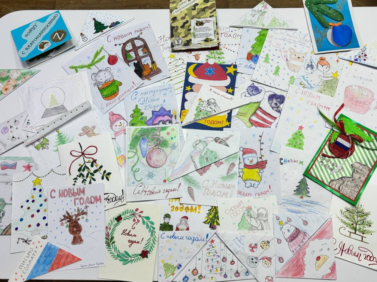 Нашими ребятами создано более 200 теплых и искренних открыток с пожеланиями благодарности, надежды и поддержки для наших солдат, которые сегодня защищают мир и спокойствие нашей страны.