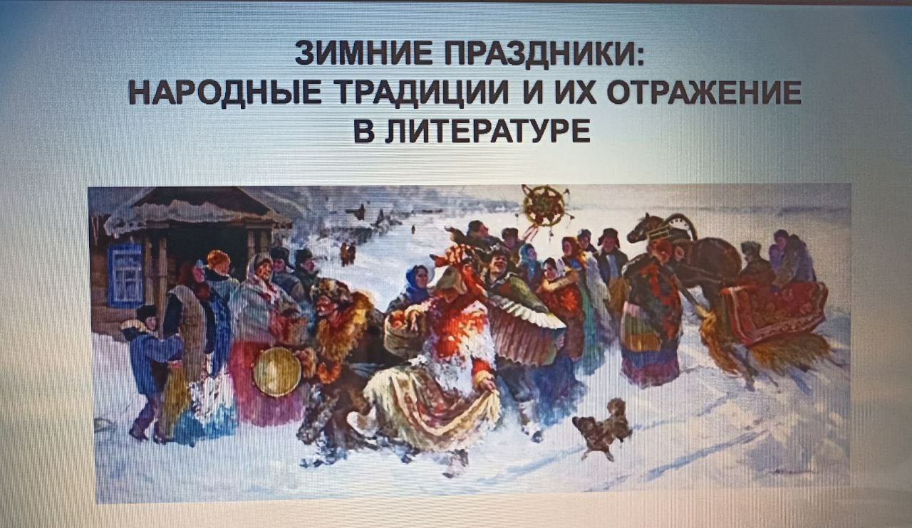 На уроках литературы на этой неделе студенты говорили о народных традициях, связанных со Святками, и их отражении в литературе. Ребята вспомнили, как гадала Светлана, героиня баллады В. Жуковского "Светлана", как кузнец Вакула доставал черевички для своей Оксаны (повесть Н. Гоголя " Ночь перед Рождеством"), как благодаря доктору Пирогову в канун Рождества в семье Мерцаловых происходит настоящее чудо (рассказ А. Куприна "Чудесный доктор"), как Ванька Жуков пишет письмо "на деревню дедушке" (рассказ А. Чехова " Ванька").