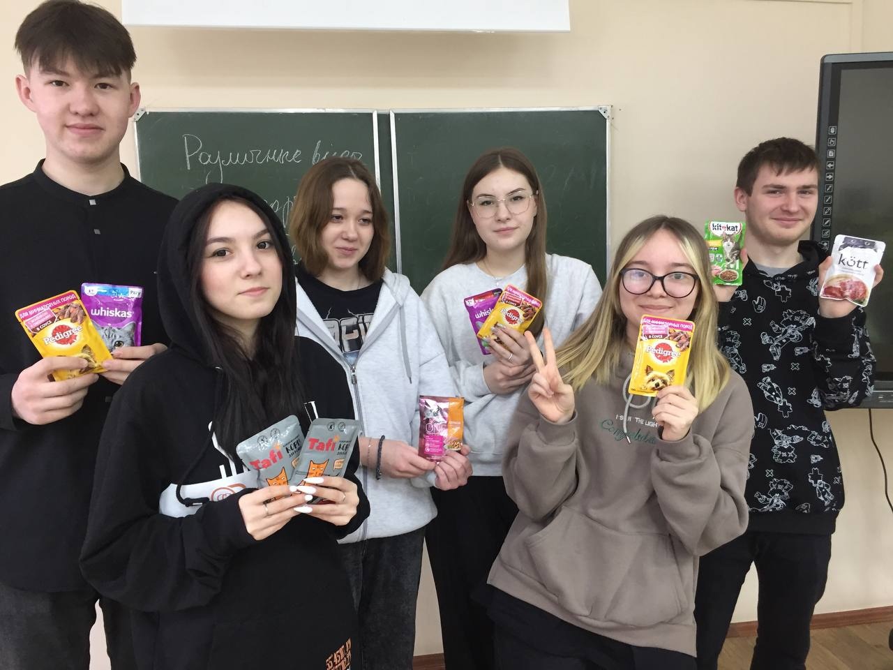 Силами студентов, родителей и классных руководителей были собраны и переданы в пункт сбора корма для кошек и собак. Спасибо всем, кто подал руку помощи бездомным животным и не остался равнодушным к их беде!