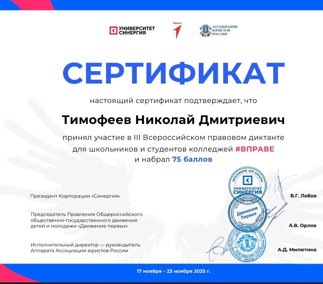 Это возможность проверить свои знания в сфере законов России и узнать, как максимально эффективно использовать свои права, а также научиться защищать свои правовые интересы и способствовать формированию правовой грамотности в стране.
