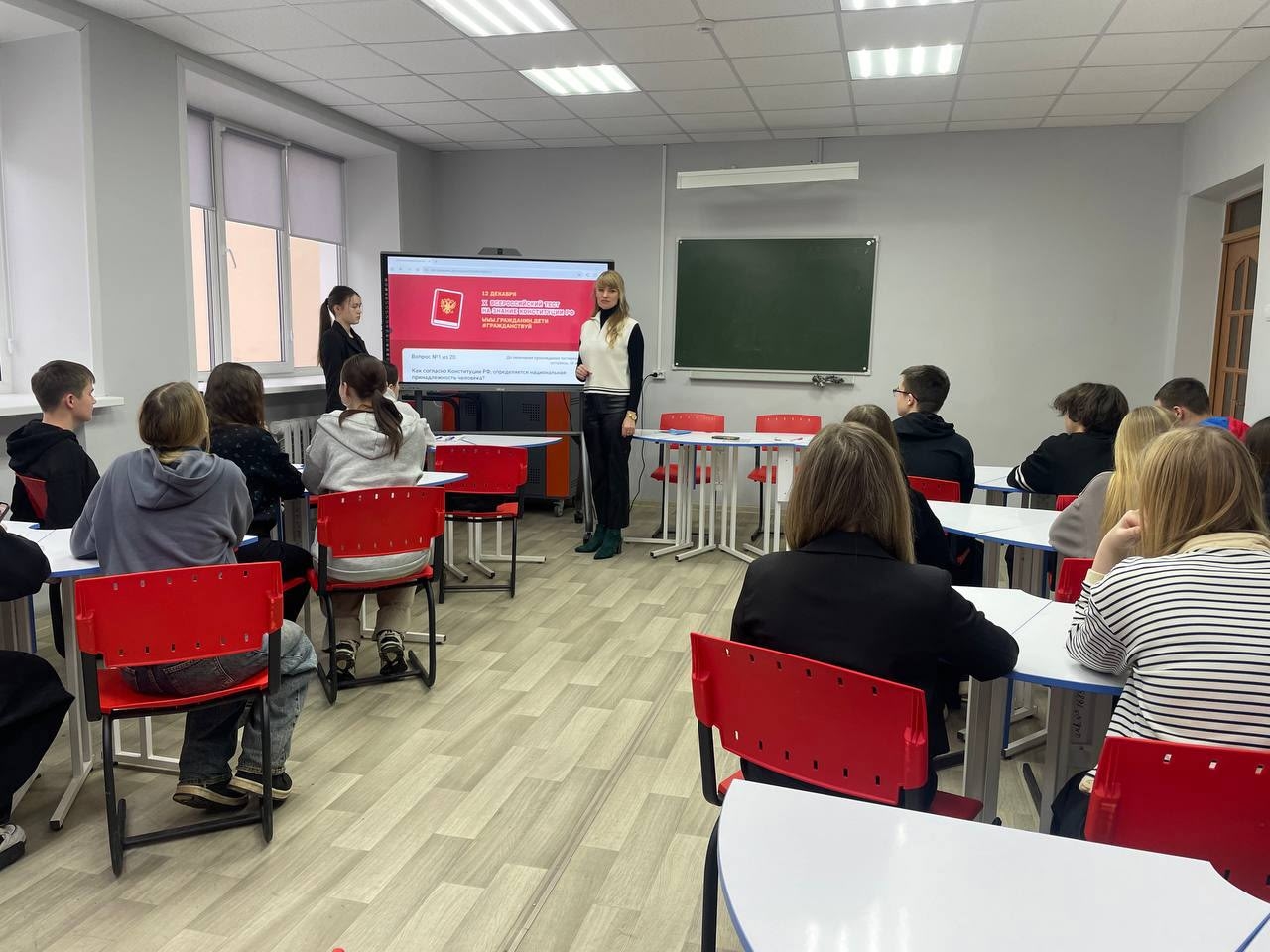 В рамках учебного занятия по обществознанию с группой Ю-14 была рассмотрена история возникновения Конституции,получены ответы на такие вопросы, как ":Какие права есть у вас как у граждан?", "Что такое свобода слова и где ее границы?", "Почему важно соблюдать законы?",рассмотрены жизненные ситуации , где студентам нужно было применить знания из Конституции для решения поставленной проблемы. В завершении студенты приняли участие в X Всероссийской Акции «Всероссийский тест на знание Конституции РФ», которая проводится для оценки уровня правовой грамотности россиян, а также для мотивации общества к изучению гражданского строя Российской Федерации и выполнению конституционных обязанностей.