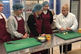Практическое занятие было проведено в учебной лаборатории , где мастер - класс показали Соколова Н. Л. - зам. директора по производственной работе и Учкина Н. А. - зав. учебным отделением очной формы обучения. Они преподаватели по направлению Технология общественного питания.