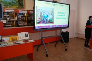 Вниманию студентов была представлена слайд-презентация и видеоролик «Люди твои, Чувашия». Особое внимание библиотекари обратили на книжную выставку. Ребята вспомнили самые известные места, связанные с именем И.Я. Яковлева. Преподаватель русского языка и литературы Плотникова Е.В. дополнила выступление и предложила поучаствовать студентам в конкурсе видеороликов «Мальчик из чувашского села», который проводит ФГБОУ ВО "ЧГПУ им. И. Я. Яковлева".