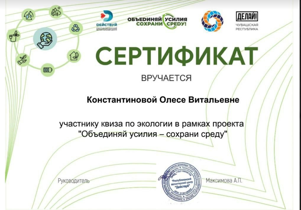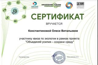 Студенты Чебоксарского кооперативного техникума Чувашпотребсоюза Александрова Инесса, Алексеева Александра, Иванова Вероника, Константинова Олеся, Печкова Александра и Хачатрян Артем объединились в команду и приняли участие в КВИЗе на экологическую тематику в рамках реализации проекта "Обьединяй усилия - сохрани среду!" , поддержанного фондом "Соработничество",в рамках конкурса "Бережливая инициатива".