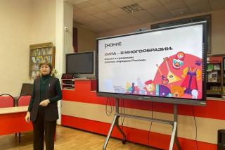 Ребята вместе с лектором Плотниковой Е.В. в конце занятия смогли сформулировать основную мысль лекции: языковое и культурное разнообразие России является не только национальным достоянием, но и важным аспектом нашего общественного единства, а также уважение к различным языковым и культурным традициям - необходимый шаг к построению гармоничного общества.