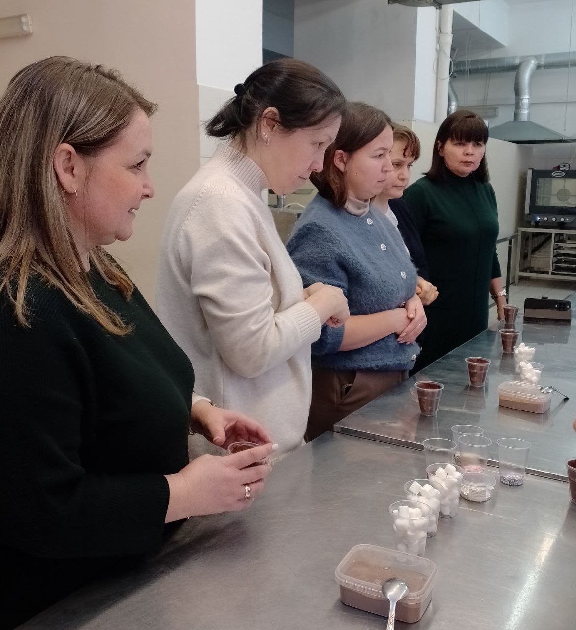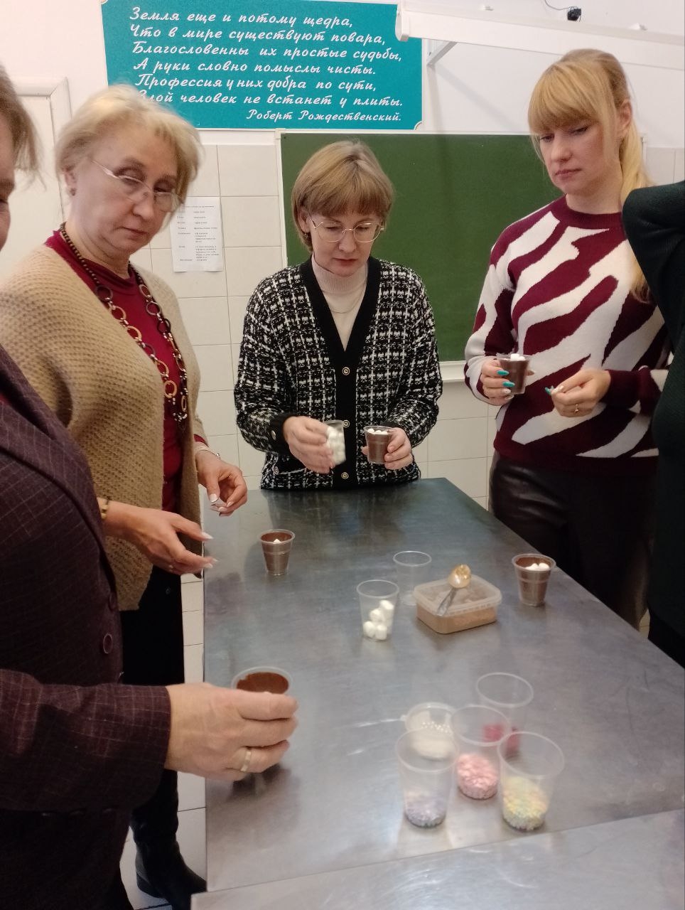 Преподаватели других циклов погрузились в атмосферу творчества, приняв участие в изготовлении и украшении изысканных шоколадных бомбочек. Эта недолгая встреча стала отличной возможностью расслабиться во время напряженного учебного дня, зарядиться вдохновением и новыми кулинарными идеями.