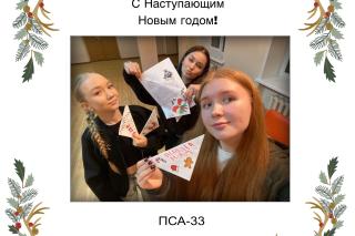 Группа ПСА-33 приняла активное участие в данной акции. Студенты подготовили для мобилизованных на СВО солдат новогодние письма со словами поддержки и пожеланиями скорейшего возвращения к своим родным и близким.