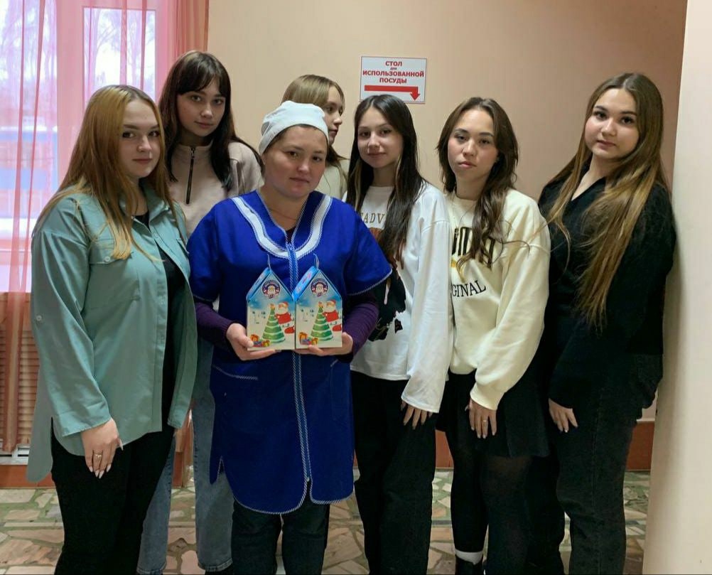 В рамках Всероссийской акции "Новый год в каждый дом" студенты группы ПСА-14 поздравили семью военнослужащего, мобилизованного в сентябре 2022 года. Его жене, сотруднице нашего техникума, Козловой Олесе Валериановне были переданы подарки для двоих детей и наилучшие пожелания и поздравления с наступающим Новым годом.