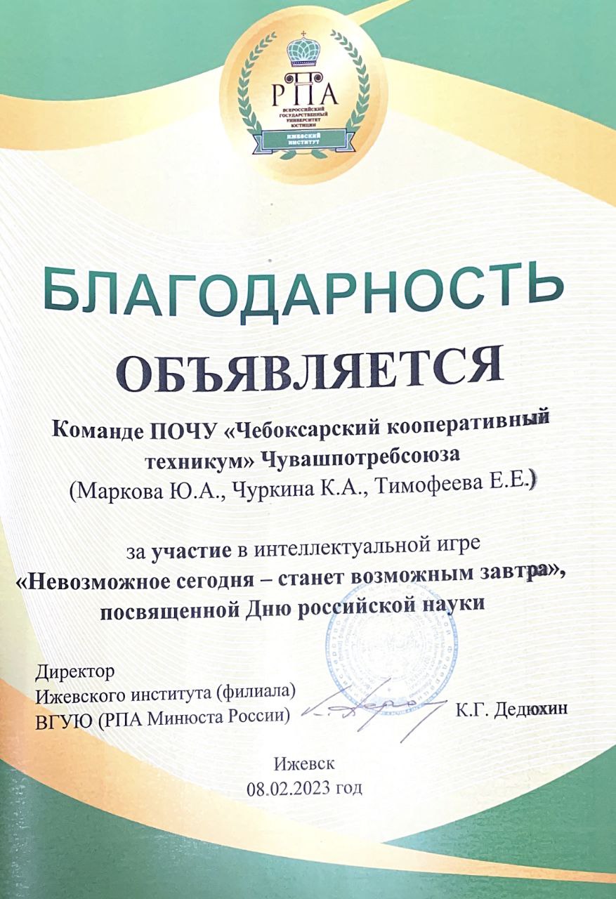В честь Дня Российской науки на базе Ижевского института (филиала) ВГУЮ (РПА Минюста России) была проведена онлайн-викторина «Невозможное сегодня – станет возможным завтра».