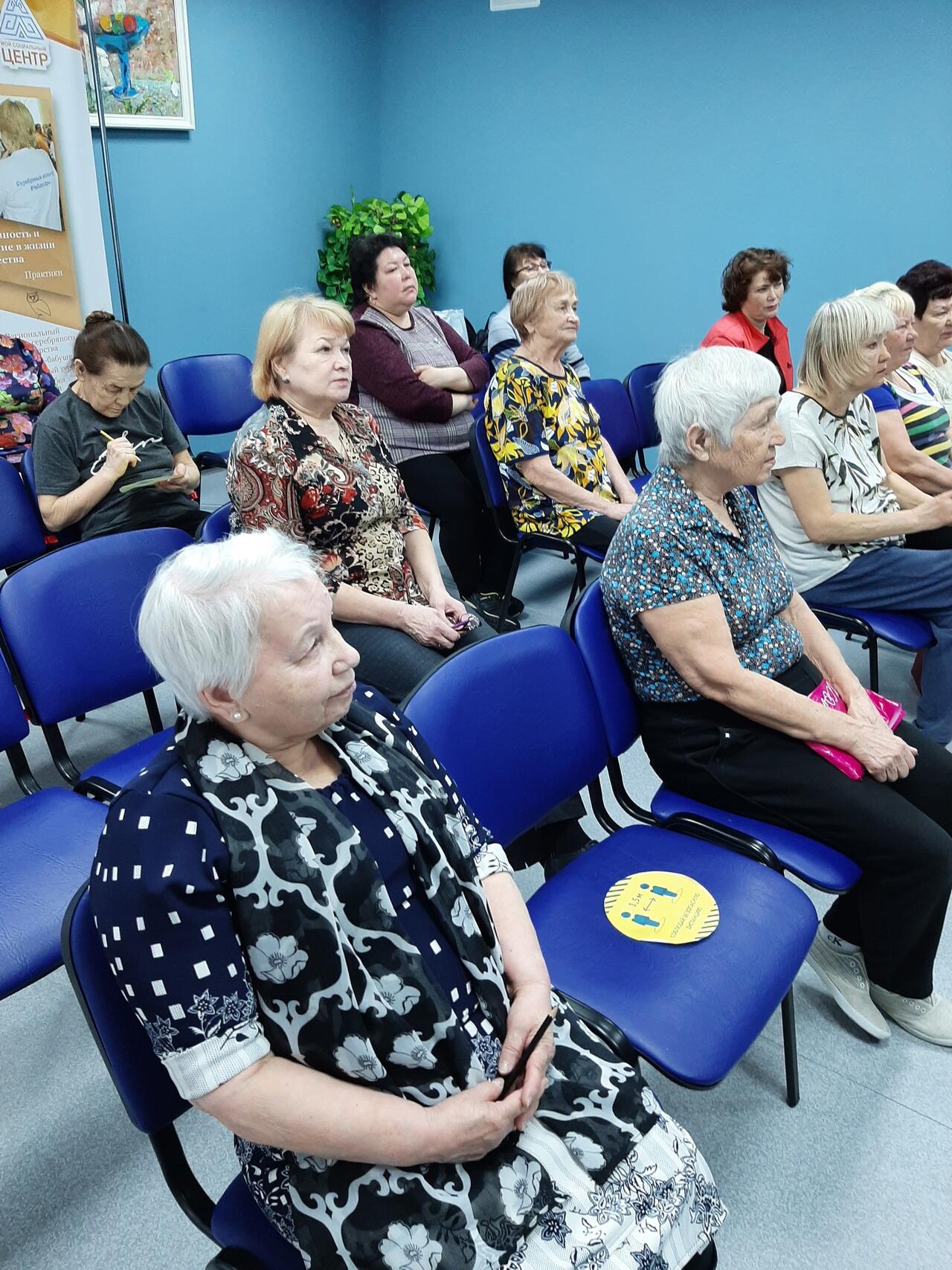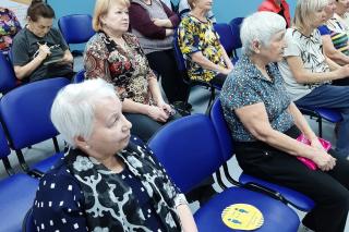 Люди старшего возраста с интересом прослушали лекцию, заполнили анкету и получили буклеты по финансовой грамотности.