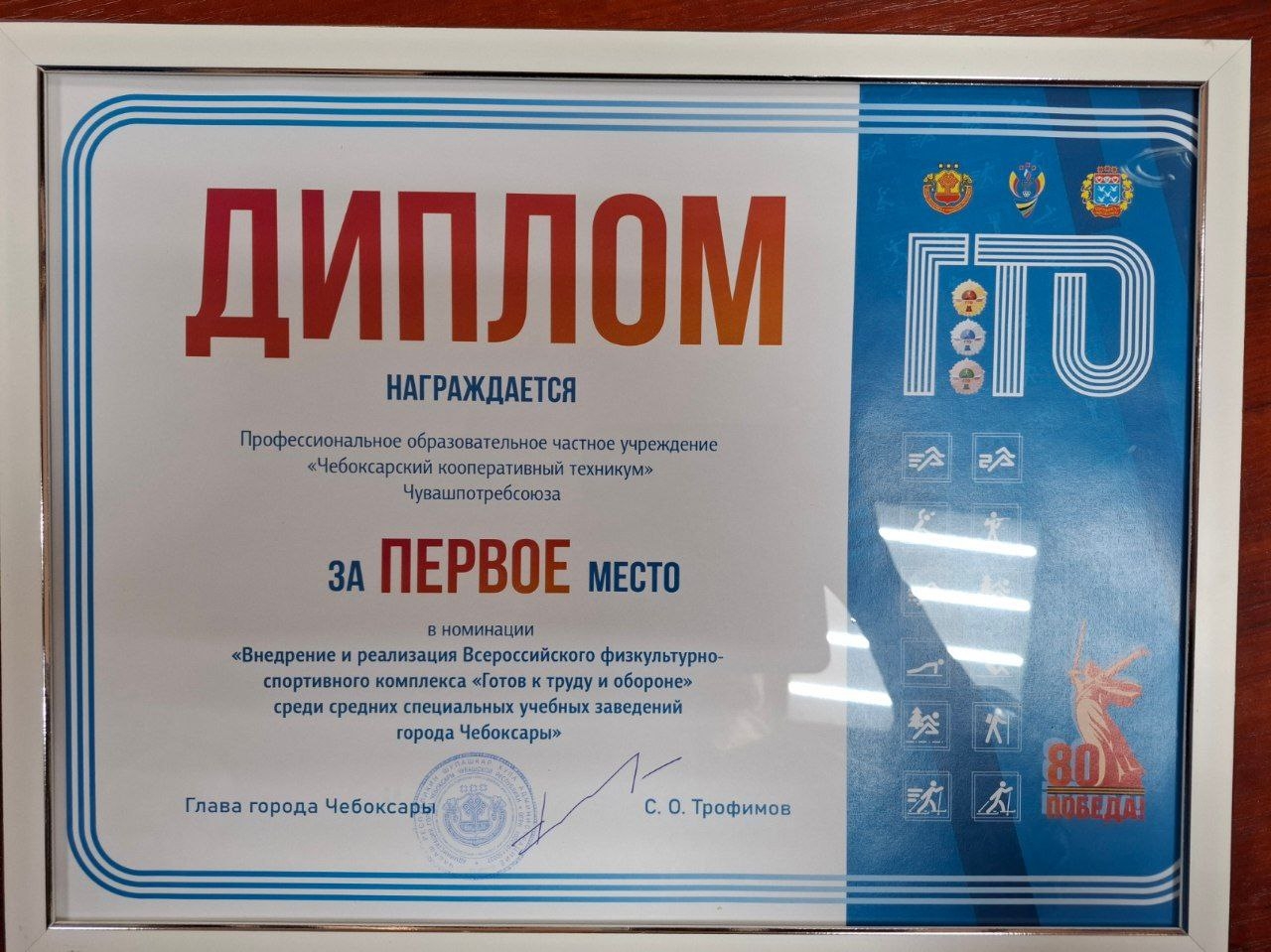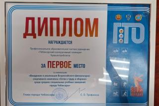 Отличная новость! Наш техникум занял ПЕРВОЕ место в конкурсе на лучшую организацию работы по внедрению и реализации Всероссийского физкультурно-спортивного комплекса "Готов к труду и обороне (ГТО)" среди техникумов и колледжей г.Чебоксары!