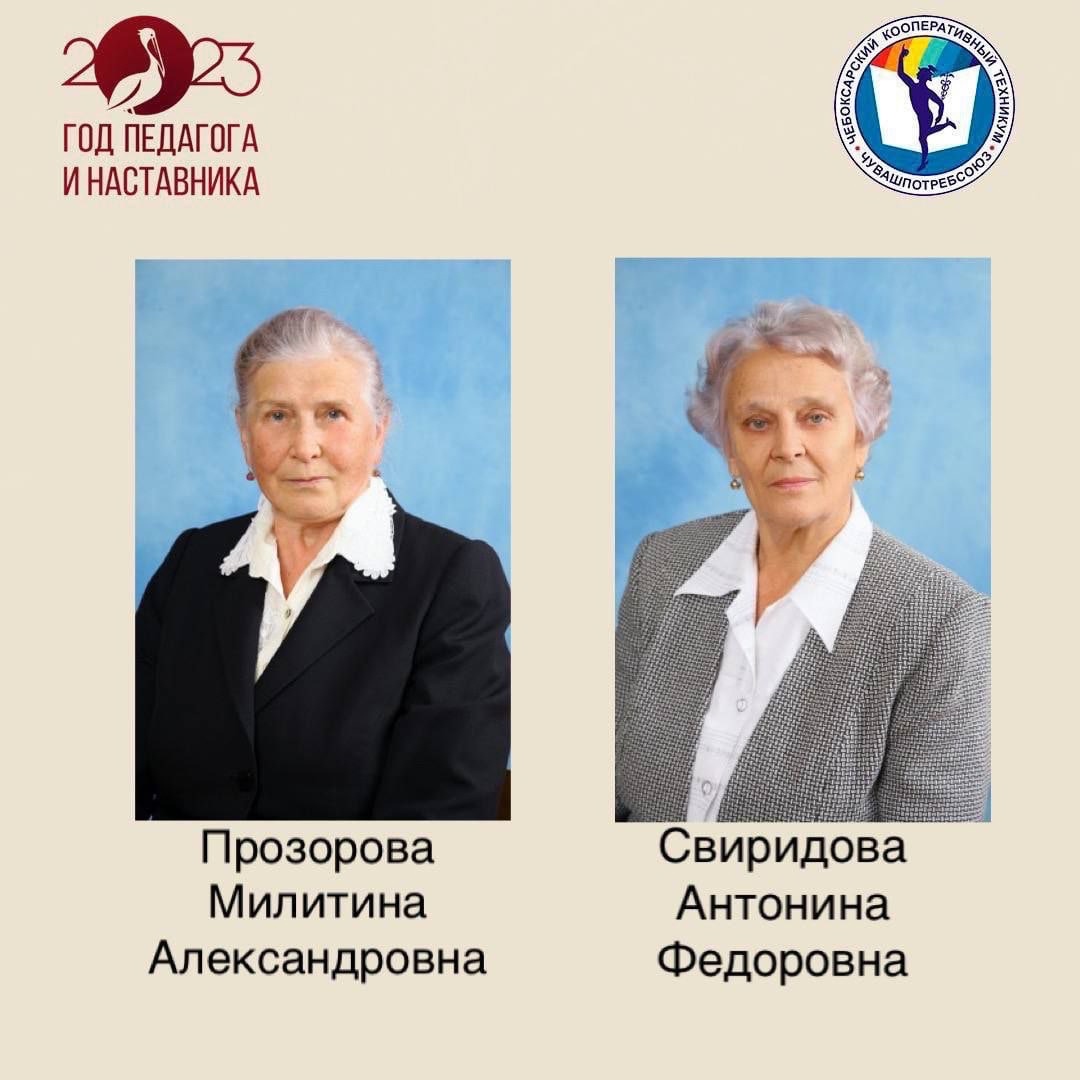 За свой педагогический труд Прозорова М.А. получила звание Заслуженный учитель Чувашской АССР, награждена Почетным Знаком Министерства высшего и среднего специального образования СССР и ведомственными наградами. Свиридова А.Ф. за успехи, достигнутые в работе, многолетний добросовестный труд Указом Президента Чувашской Республики награждена Почетной грамотой Чувашской Республики и Орденом «За заслуги перед Чувашской Республикой» и ведомственными наградами.