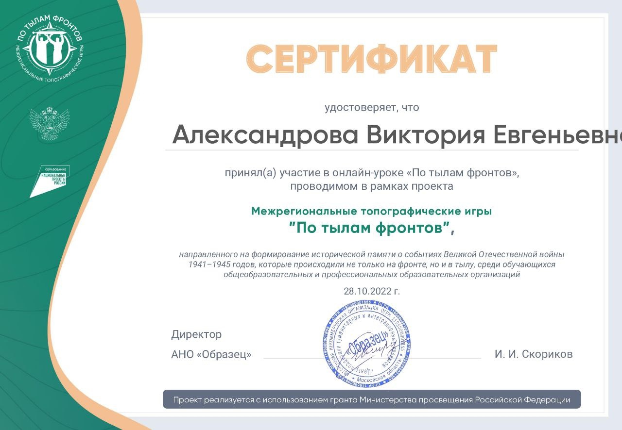 В рамках федерального проекта "Патриотическое воспитание граждан Российской Федерации " национального проекта "Образование " студенты группы ПСА-15 28 октября 2022 года приняли участие в онлайн-уроке "По тылам фронтов". Целью данного урока является формирование у обучающихся образовательных организаций общего и среднего профессионального образования ценностей на основе исторической памяти народов России.