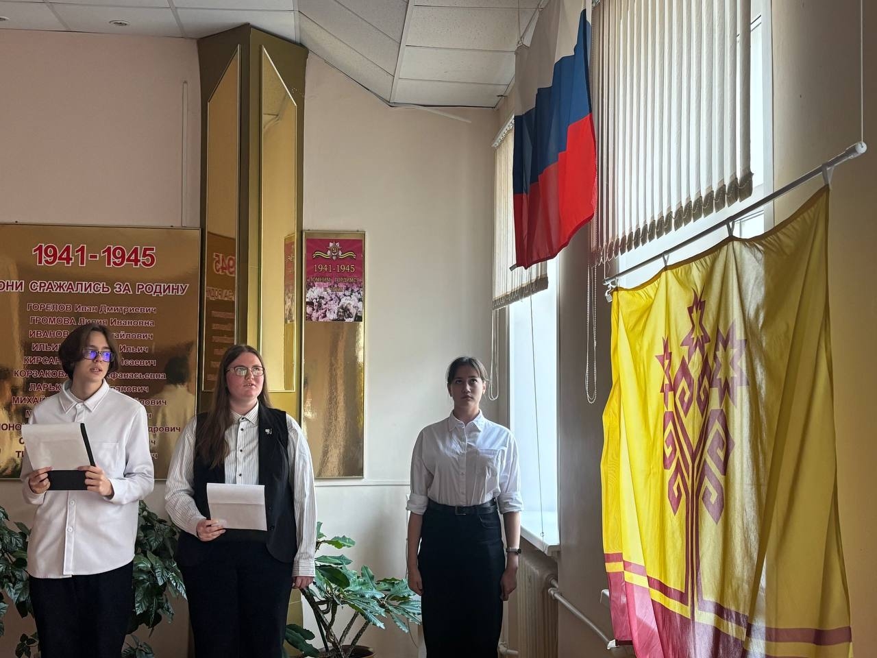 Сегодня в нашем техникуме состоялась торжественная церемония поднятия флагов Российской Федерации и Чувашской Республики.