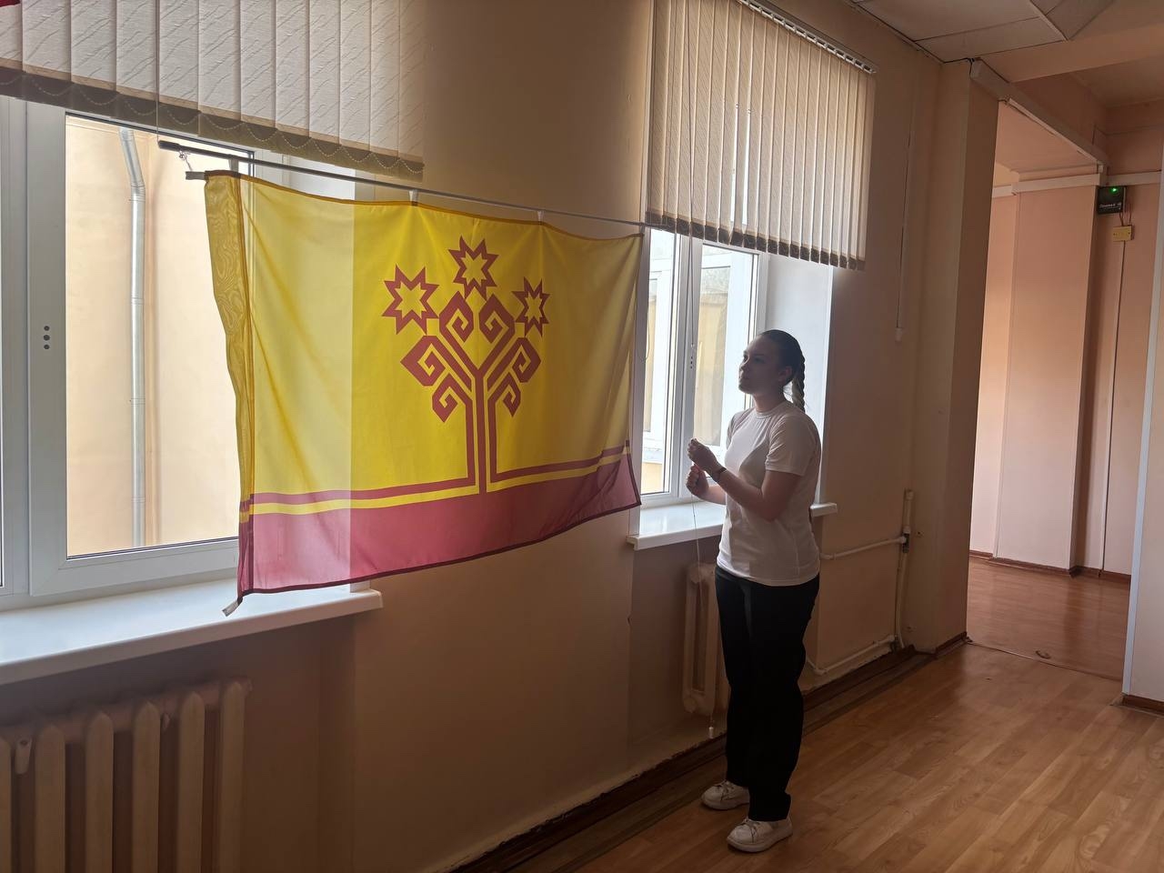 Флаг Чувашской Республики подняла Дерезина Виктория, обладательница второго разряда по настольному теннису по г. Чебоксары.