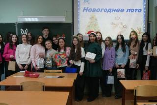 Сначала студенты поиграли в игру «Новогоднее лото», где с удовольствием вспоминали новогодние фильмы, мультфильмы, песни, разгадывали загадки и ребусы. Также познакомились с некоторыми новогодними традициями в разных странах. Некоторым студентам посчастливилось вытянуть сладкие призы, мандарины и сувениры символа Нового года.