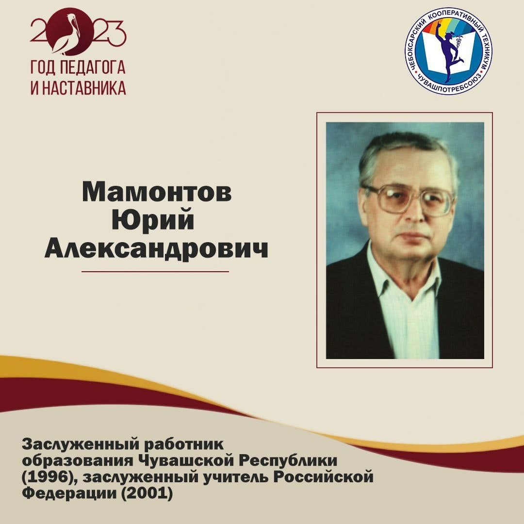 Весомый вклад в дело подготовки специалистов среднего звена внес Мамонтов Юрий Александрович, директор Чебоксарского кооперативного техникума (1987-2008 гг.).