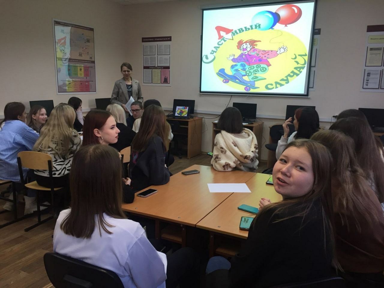 Студенты группы Б-11 разделились на две команды и выбрали себе капитана. Командам пришлось решить 5 заданий:"Дальше,дальше", "Заморочки из бочки", "Веришь-не веришь", " Все наоборот", "Конкурс капитанов".Вопросы были по информатике. В ходе игры студентам пришлось проявить эрудицию, вспомнить материалы, пройденный на занятиях. Данная игра еще больше сплотила группу.