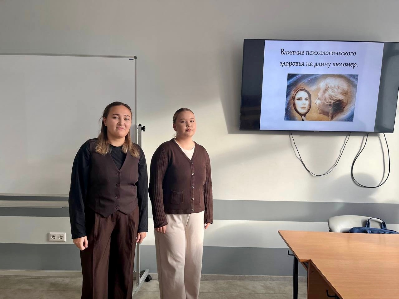 Девушки представили доклад на тему «Влияние психологического здоровья на теломеры» в секции для обучающихся среднего профессионального образования «Психологическое здоровье личности и способы его достижения».
