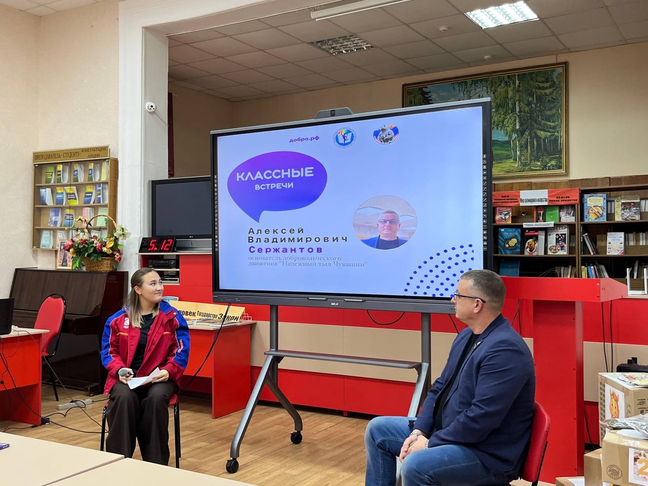 В рамках «Классной встречи» с Алексеем Сержантовым, основателем добровольческого движения «Надёжный тыл Чувашии», участники услышали о реальном опыте сбора и доставки гуманитарной помощи в зону СВО, о жизни на передовой, логистических трудностях и способах их преодоления. Алексей напомнил, что делать добро — значит действовать искренне, бескорыстно и системно.