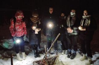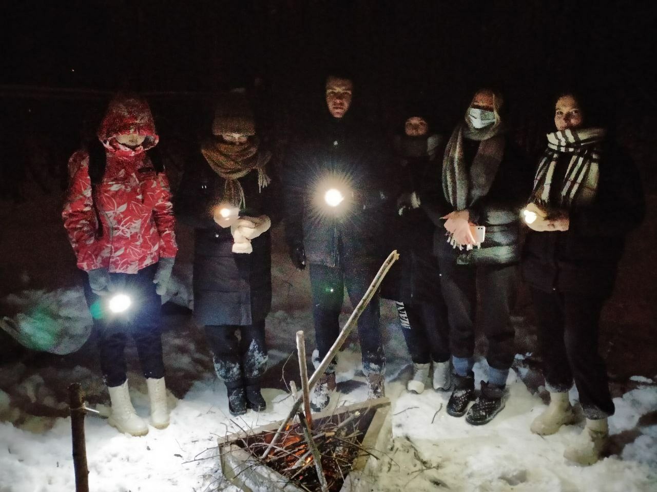 1- Разведение сигнального костра, сбор сухих дров в заснеженном лесу и поддержание горения.