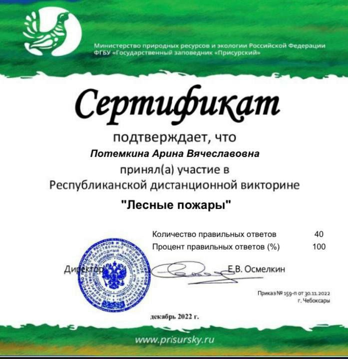 Государственный заповедник «Присурский» совместно с Благотворительным фондом Натальи Торнквист «Возрождение Природы» в рамках проекта «Сохраним Заповедное Присурье от пожаров!» проводит республиканскую дистанционную викторину «Лесные пожары».