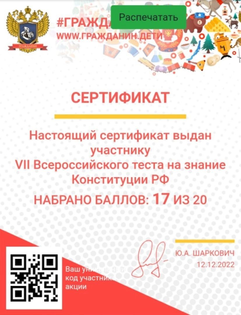 День Конституции Российской Федерации – один из главных праздников в России, который ежегодно широко и массово отмечают 12 декабря. Студенты Чебоксарского кооперативного техникума присоединились к викторине посвящённая ко Дню Конституции Российской Федерации.