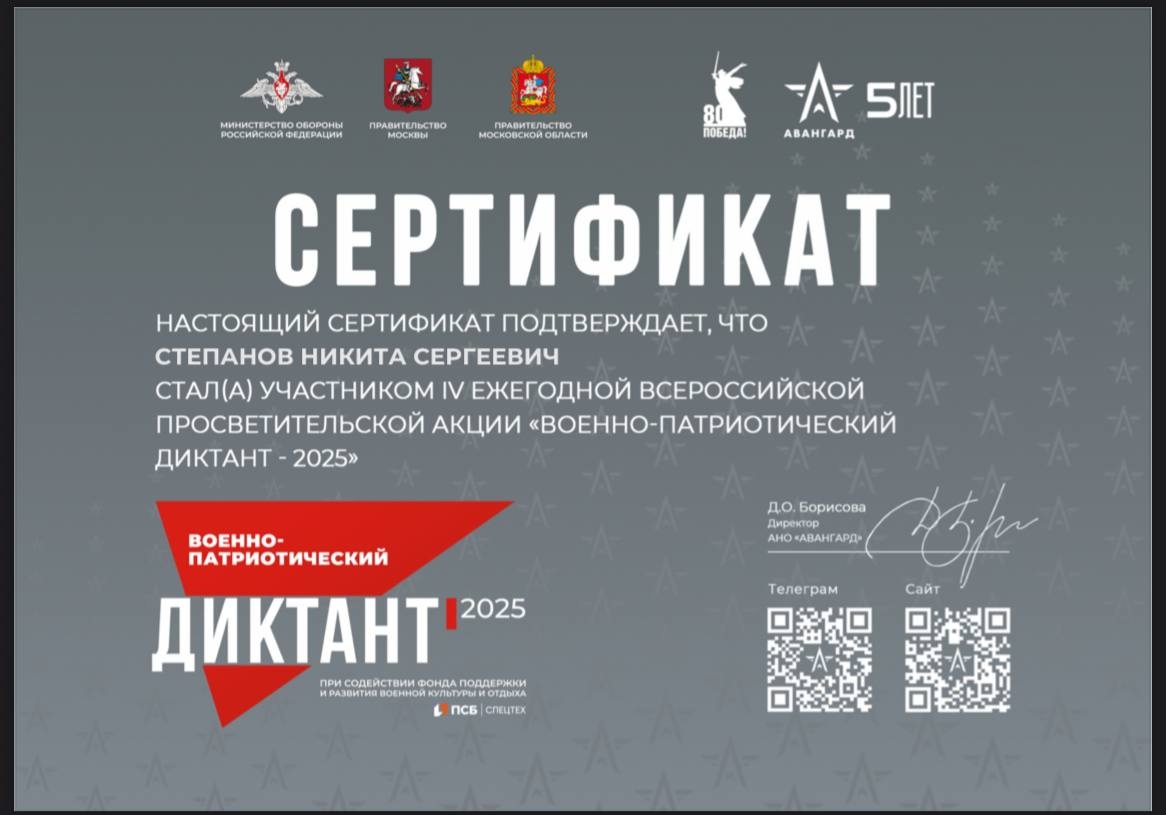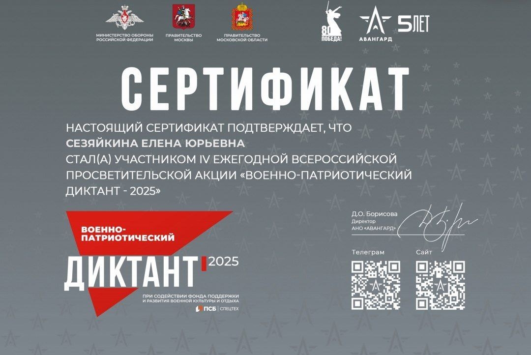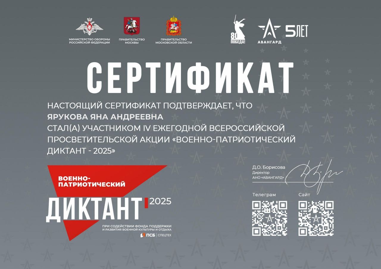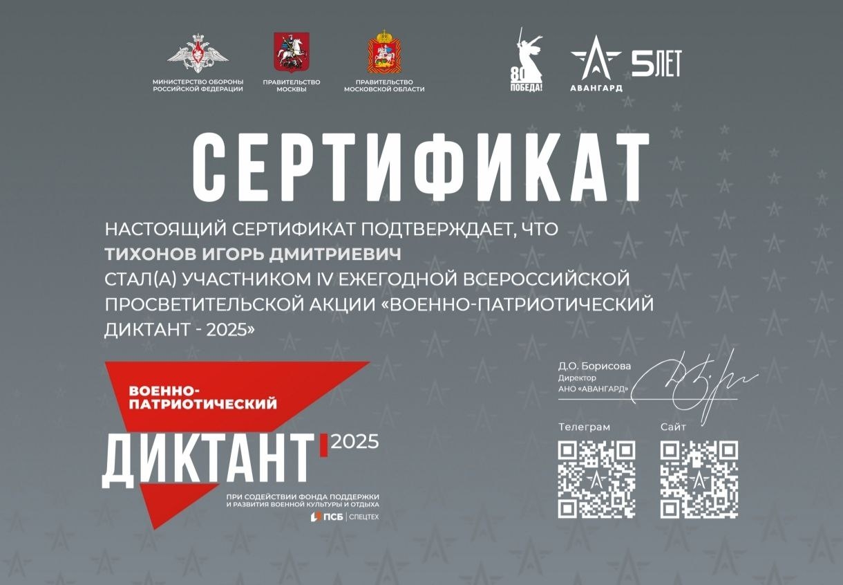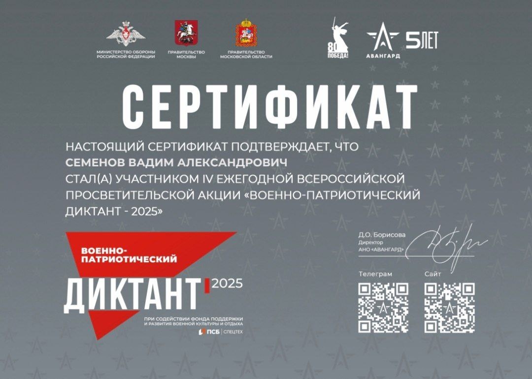 «Военно-патриотический диктант – 2025» – это не только возможность проверить знания, но и способ выразить уважение к историческому прошлому страны, укрепить чувство сопричастности и гражданской ответственности!