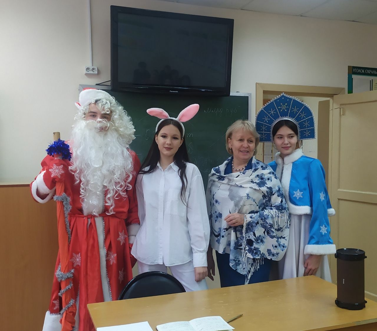 В гости в каждую группу первого курса пришли Дед Мороз, Снегурочка, а вместе с ними и символ наступающего нового 2023 года - кролик, чтобы пожелать удачи и счастья.