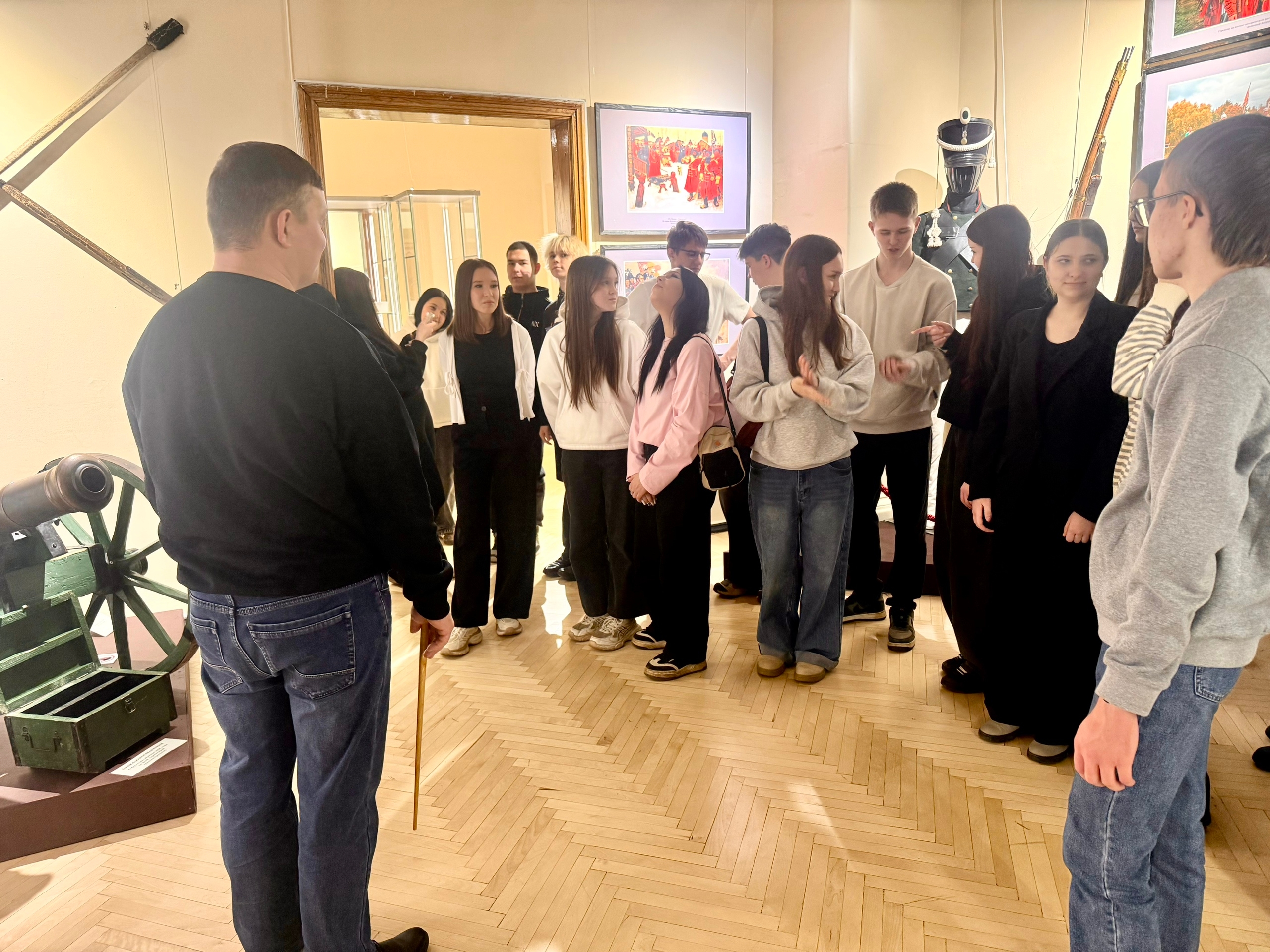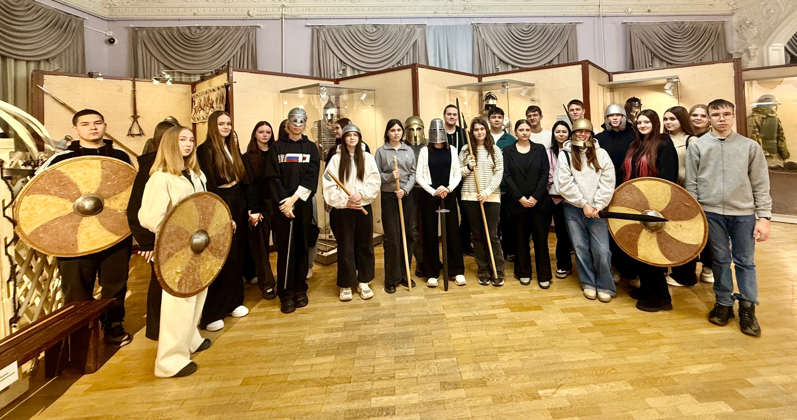 Студенты увидели как выглядели готовые к бою русичи , викинги , стрельцы, солдаты Российской императорской Армии и РККА, бойцы вооруженных сил РФ. В заключении экскурсии сделали памятные фото в понравившихся образах , почувствовали боевой дух и ощутили дыхание времени.