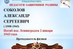 БЕССМЕРТНЫЙ ПОЛК ЧКТВ Год педагога и наставника мы продолжаем рассказывать о наших педагогах-ветеранах Великой Отечественной войны.Соколов Александр Сергеевич родился в 1908 году в деревне старые...