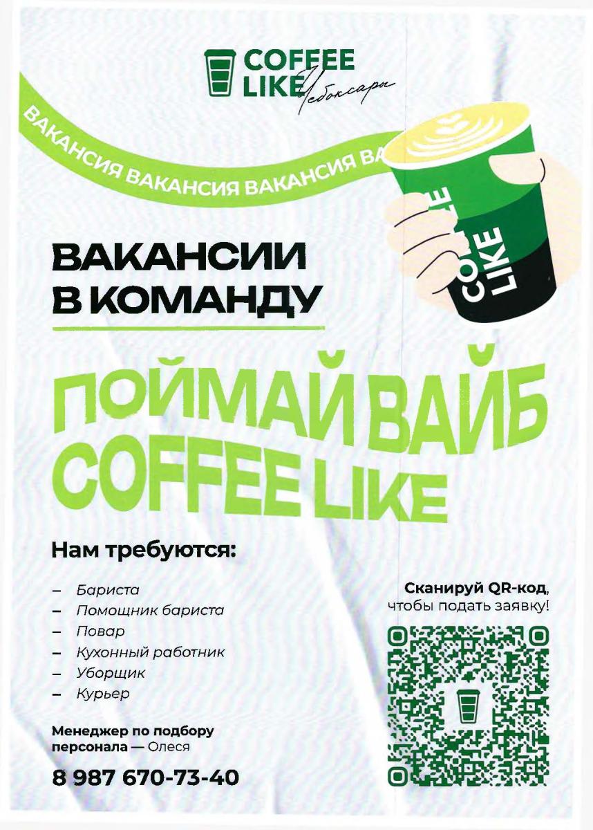 График работы сменный 2/2 с понедельника по четверг с 11.00 до 23.00, пятница с 11.00 до 01.00, суббота с 11 до 03.00, воскресение с 11.00 до 23.00. Место работы: поселок Кугеси, ул. Шёршеловская д. 7, кафе "Black&White". Организован служебный транспорт с ж/д вокзала, в вечернее время при завершении рабочего дня сотрудник доставляется до дома служебным автотранспортом. В случаи заинтересованности в сотрудничестве с нашей организацией прошу связь держать с Никифоровой Марией Юрьевной, телефон для связи - +7 961-342-61-62.